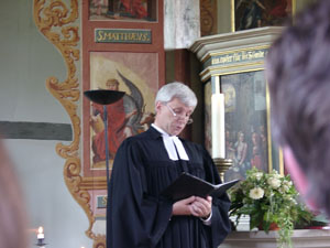 Stelle näher beim Gut versetzt. Ihre Eingangstür stammt von der Lüneburger St. Lamberti-Kirche, die 1860 wegen Senkungsschäden abgerissen werden mußte. Der Kanzelaltar stammt aus dem 18.Jh.